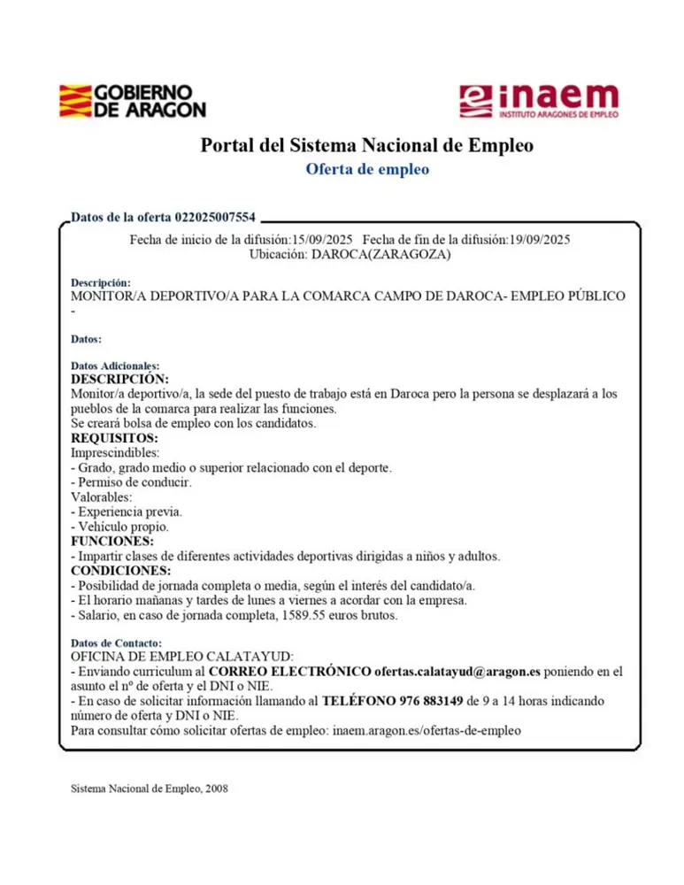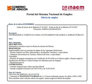 Consulta las ofertas de empleo de INAEM en Daroca en https://inaem.aragon.es/empleo-en-aragon