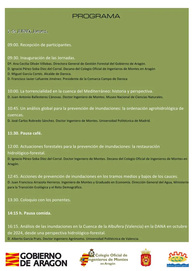 Daroca acogerá los próximos 5 y 6 de junio de 2025 un encuentro técnico sobre cómo prevenir situaciones de inundaciones a través de diferentes medidas y obras de corrección hidrológico forestal.